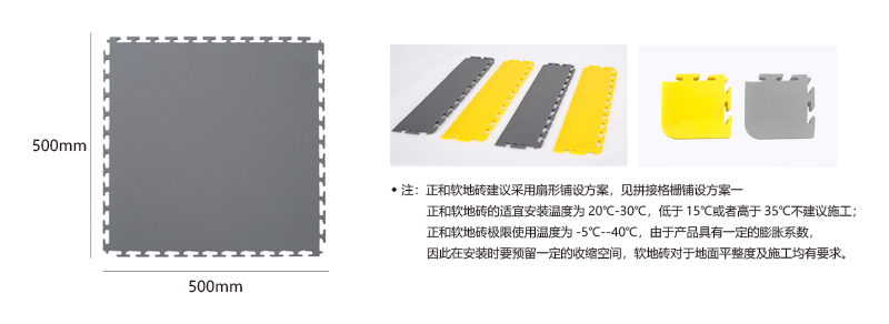 軟質(zhì)絕緣地板能夠?qū)⒚總獨立的地板快速拼裝成整體地面,專利型鎖扣結(jié)構(gòu)連接能力更強,可承受叉車的來回碾壓。施工過程中無需膠黏劑等材質(zhì),具有施工簡單快速、色彩絢麗、美觀大方、可移動性強、可重復使用等特點。
