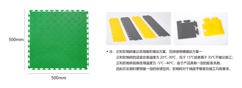 軟質(zhì)絕緣地板能將每個(gè)獨(dú)立的地板快速拼裝成整體地面,專(zhuān)利型鎖扣結(jié)構(gòu)連接能力更強(qiáng),可承受叉車(chē)的來(lái)回碾壓。施工過(guò)程中無(wú)需膠黏劑等